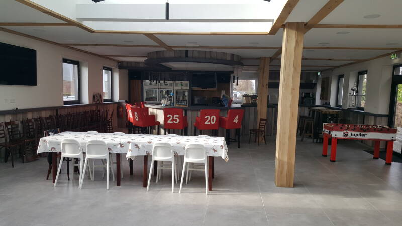 Vanaf het balkon van de bestuurskamer is er een prachtig overzicht over het A-veld, waar op dat moment de MO15-1 een oefenwedstrijd speelt tegen de JO15-1. Ondanks dat het talentvolle meidenteam misschien wel het betere van het spel heeft, is het toch de JO15 die de wedstrijd uiteindelijk wint. Maar ook voor deze spelers/speelsters geldt op dit moment dat ze vooral blij zijn ze dat in ieder geval met elkaar kunnen voetballen. De club vind het vooral in deze tijd belangrijk dat de spelers actief blijven en dat de binding blijft met de leden. Met de avondklok is er dan ook meteen geanticipeerd en is het trainingsschema aangepast, zodat iedereen wel kan blijven trainen. In plaats van doordeweeks gaan sommige groepen nu vast in het weekend trainen, uiteraard allemaal niet ideaal maar de club wil wel het gevoel hebben dat ze steeds het maximale aanbiedt aan haar leden.
