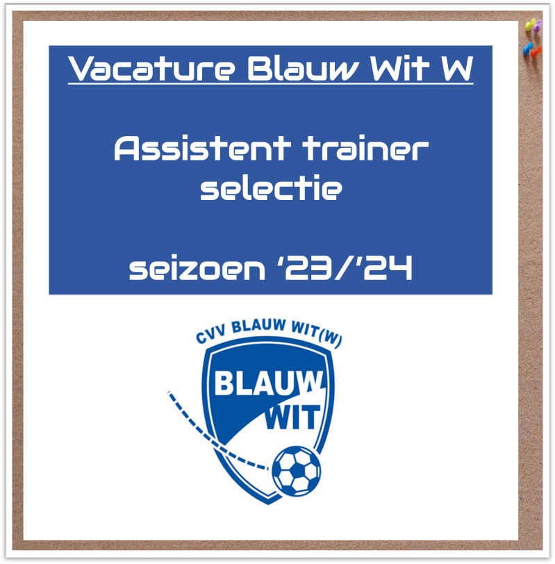 CVV Blauw-Wit (W) is op zoek naar een assistent-trainer selectie, die:
