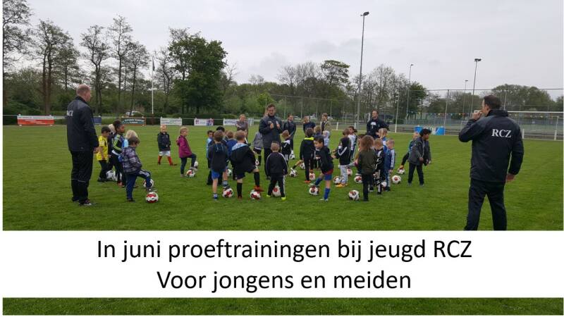 De groeiende jeugdafdeling van RCZ, de club waar alles kan, heeft nog steeds ruimte voor nieuwe spelers. Ook in juni is het mogelijk voor jongens en meiden vanaf 4 jaar mee te doen aan enkele proef trainingen.