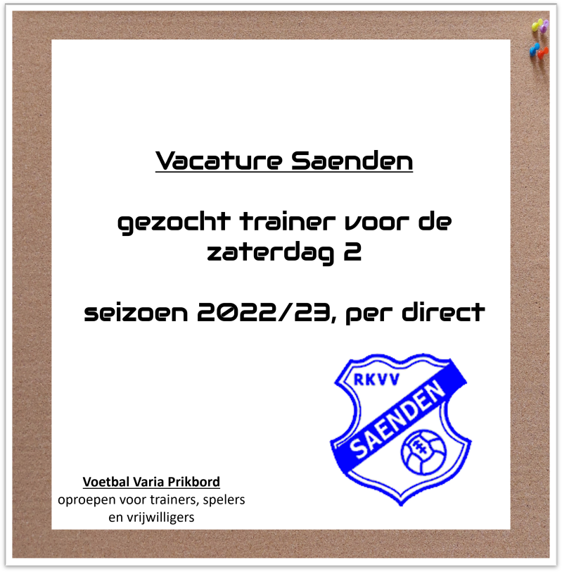 Het 2e (en enige) zaterdagteam van Saenden zoekt per direct een trainer. Het team bestaat uit jongens van 18 tot en met 27 jaar en de trainingsavonden zijn op maandag en woensdag