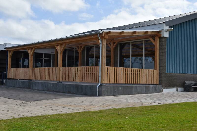 Afgelopen maanden is er bij zvv Zaandijk door een grote groep enthousiaste Zaandijkers keihard gewerkt om het terras voor de kantine te vernieuwen en te voorzien van een schitterende overkapping.