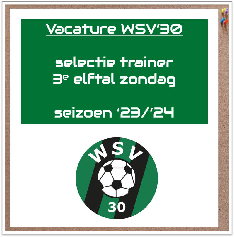 Voor het aankomende seizoen 2023-2024 is WSV'30 Wormer op zoek naar een enthousiaste en gedreven trainer/coach voor het 3e zondag elftal.