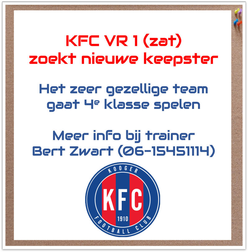 KFC VR (zat) zoekt nieuwe keepster